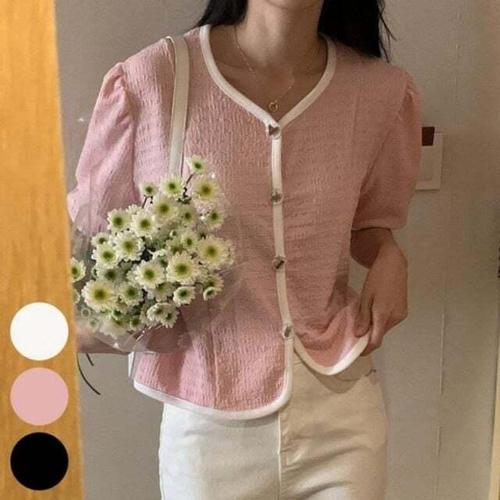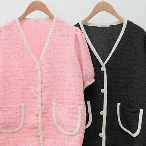 [셀럽하우스]의류 PZOW4224 빅사이즈 브이 퍼프 배색 306P548S 가디건