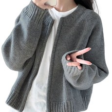 라운드넥 지퍼 니트코트 아우터 캐주얼 무지 루즈핏 니트 가디건 H45128