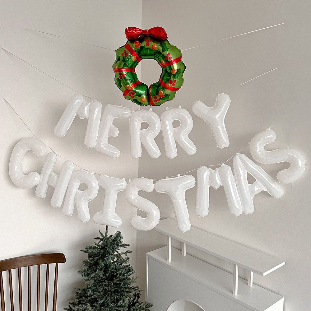 메리 크리스마스 화이트 이니셜 풍선 원팩 홈 파티 소품