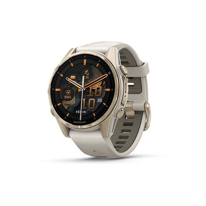 가민 Garmin 피닉스 8 43mm 아몰레드 사파이어 소프트 골드 포그 그레이 밴드 GPS