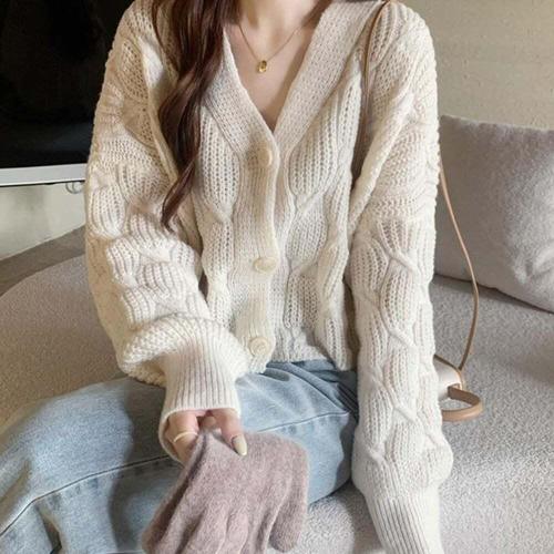[셀럽하우스]모던한 WJUB2466 꽈배기 가디건 가오리핏 베이직 니트가디건