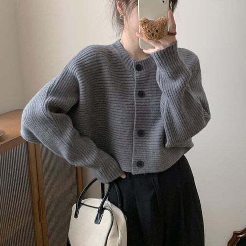 [셀럽하우스]가로 YUAF7859 골지 크롭 노카라 가오리핏 데일리 가디건