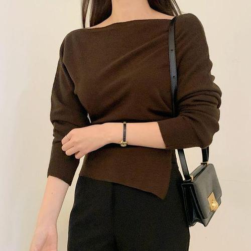 [신상오픈런]여성 오프숄더 슬림핏 니트 가오리핏 사선 트임 가을용