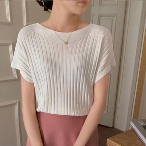 [셀러허브_여성트랜드패션]ONM 여성 세로줄 가오리핏 니트 반팔티 1P 체형커버