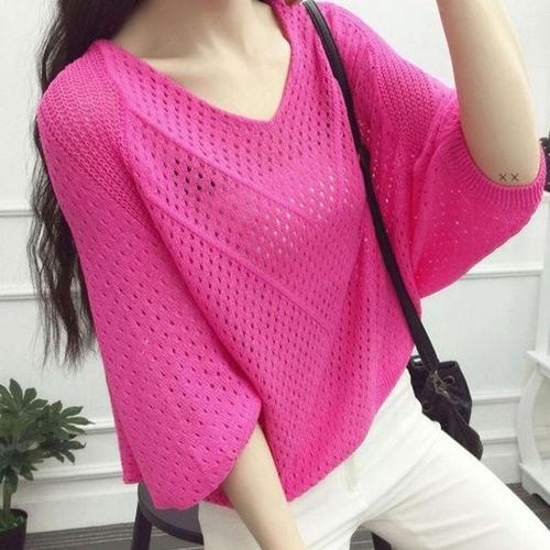 [미라클세븐]여성 가오리 소매 펀칭 니트 여름 보트넥 커버업 스웨터