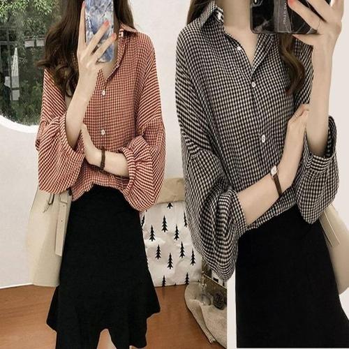 [엄지척]체크블라우스 2컬러 가을 가오리핏 봄 여성 체크셔츠_19644946_667501
