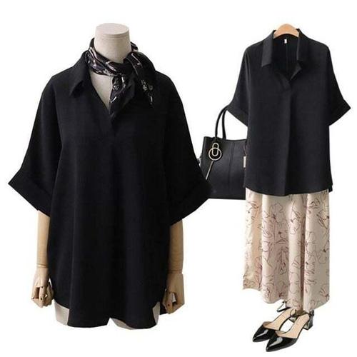 [셀럽하우스]무지 JIJT7220 블라우스 카라 DWW5181 가오리 심플 빅사이즈