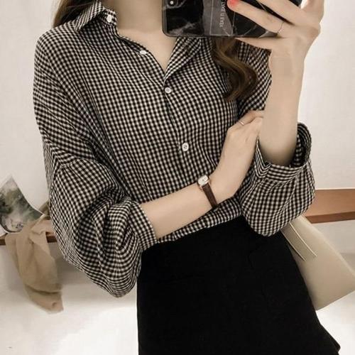 벌룬소매 여자 남방 잔체크 셔츠 루즈핏 가오리핏 WFLPTO9