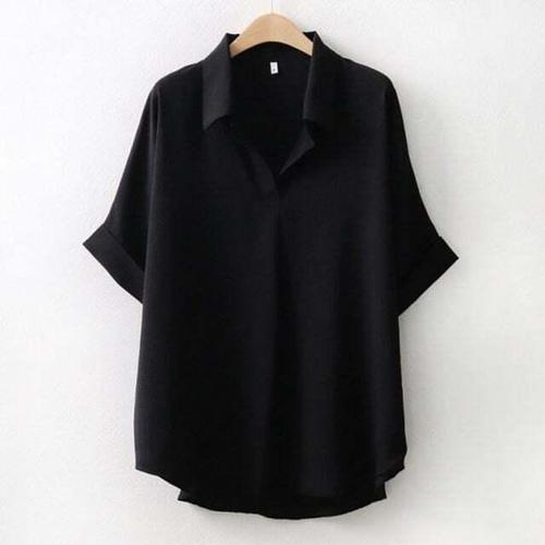 [셀럽하우스]빅사이즈 RIMD7323 가오리 롤업 블라우스 썸머 소매 데일리 여