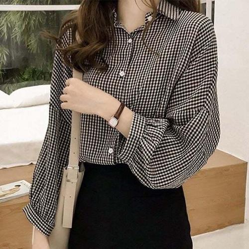 [셀럽하우스]체크 DUJI1641 데일리 가오리핏 셔츠 블라우스 체크셔츠 LK S00