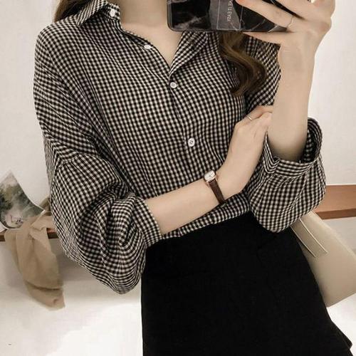 [에이치플러스몰]베이직 여성 체크 남방 여자 가오리핏 셔츠 블라우스 여성셔츠