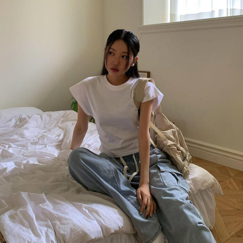 [옷자락]여성 무지 코튼 반팔티 셔링 가오리핏 사이드 디테일