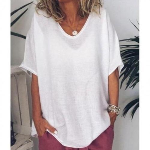 여성 오버핏 브이넥 반팔 티셔츠 면 소재 밴딩 가오리 디자인