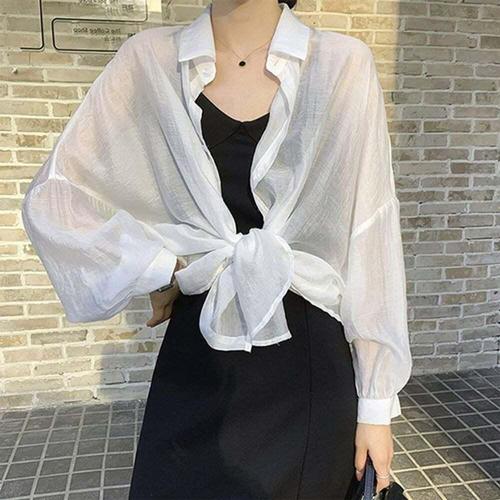 [셀럽하우스]여자 XCAI7279 시원한 시스루 패션 쉬폰 가오리핏 오버핏 셔츠