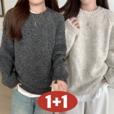 오스틱니 2025 1+1 여성용 가을겨을 캐주얼 단색 날씬해 보이는 루즈핏 라운드넥 긴팔티 니트