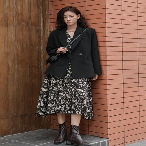 (~XXL까지) 루자 자켓 레이어드 배색 플레어 원피스 봄 가을 하객룩 오피스룩 모임룩 격식룩 빅사이즈