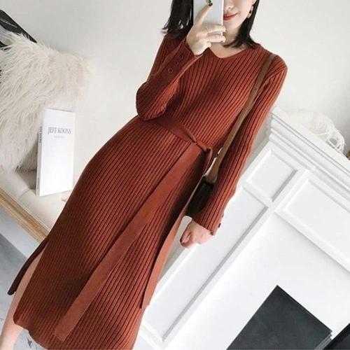 [엄지척]가을 겨울 여성 허리끈 골지 니트 롱 원피스_19912204_667501