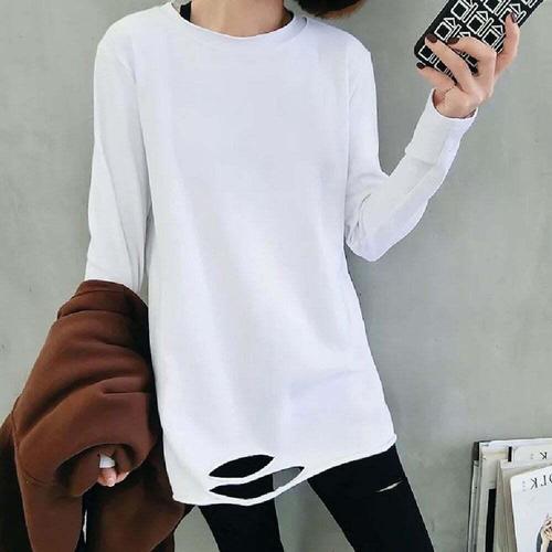 [셀럽하우스]밑단 IDLT6263 빈티지 레이어드 여성 긴팔 롱 티셔츠 봄 가을
