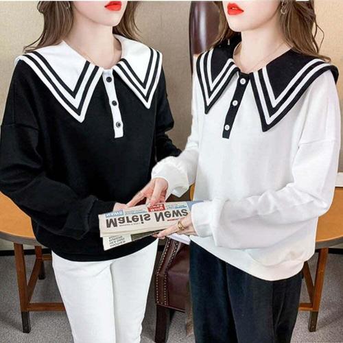 [셀럽하우스]봄 CPDY9439 가을 여자 뾰족 롱카라 배색 예쁜 긴팔 티셔츠