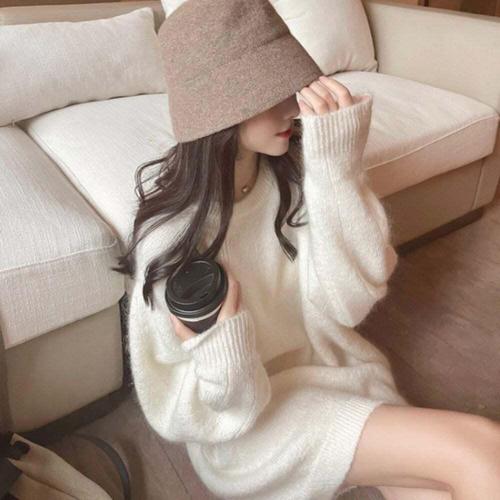 [셀럽하우스]여성 HKXL4682 2컬러 포근한 가을 겨울 롱 니트 루즈핏 티셔츠