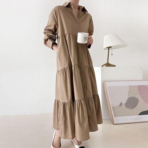 [유야]카라 셔츠 캉캉 롱 원피스 꾸안꾸 -OP0568H- 빅사이즈 루즈핏 여성 가을