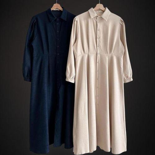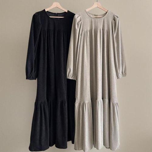[신상오픈런]여성 가을 대형 셔링 캉캉 퍼프 골덴 긴 원피스