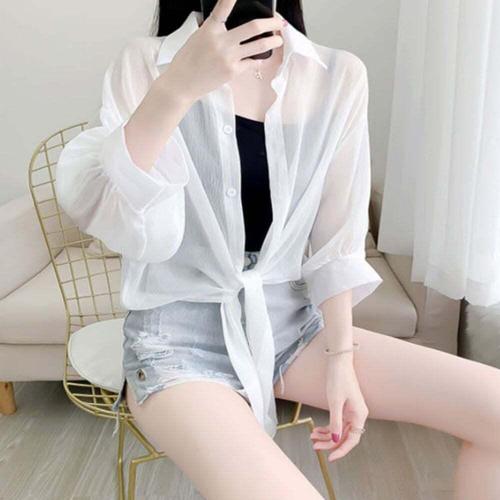 [셀럽하우스]여성 EIGV7955 쉬폰 셔츠 시스루 봄여름 가을 얇은 셔츠 외출복