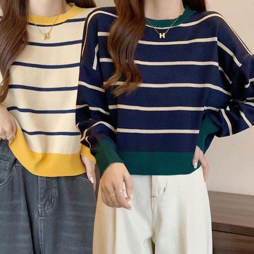 [셀럽하우스]스트라이프 FDNF4567 여성 봄 가을 겨울 크롭 니트 티셔츠