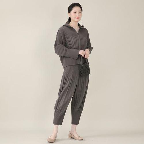 [애비뉴투지]엄마옷 도톰한 이중 플리츠 후드 점퍼+플리츠 배기 바지 봄 가을 트레이닝 상하세트 H10549