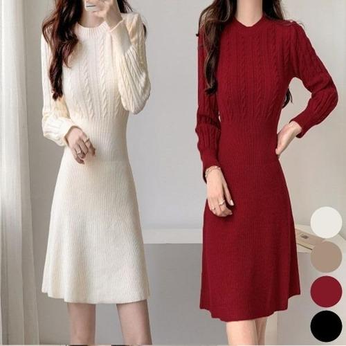 [엄지척]봄 가을 꽈배기 라운드넥 A라인 밴딩 미니 원피스_19909998_667501