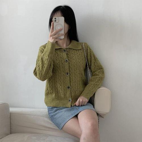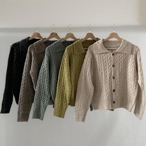 [신상오픈런]여성 꽈배기 디자인 카라넥 기본핏 가을 컬러 니트 cardigan