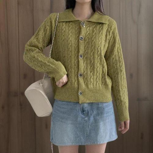 [신상오픈런]여성 꽈배기 디자인 카라넥 기본핏 가을 니트 가디건