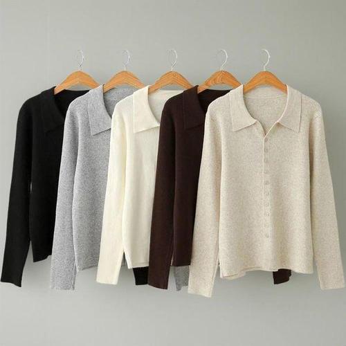 [신상오픈런]여성 카라니트 버튼 긴팔 가디건 기본 가을 잔골지