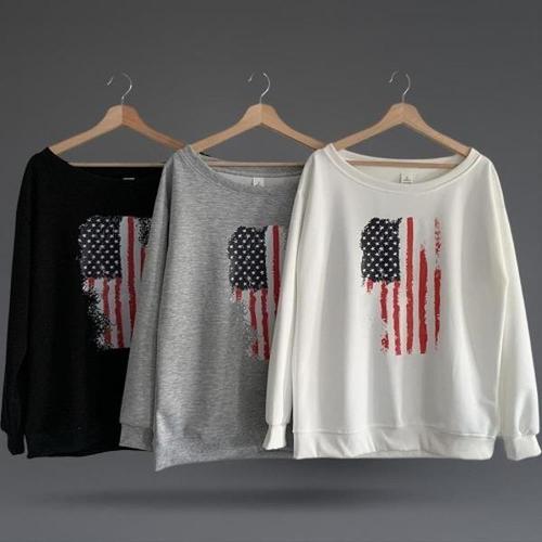 [신상오픈런]|CST9A43|여성 오프숄더 루즈핏 성조기 프린트 가을 맨투맨_23230958_597559