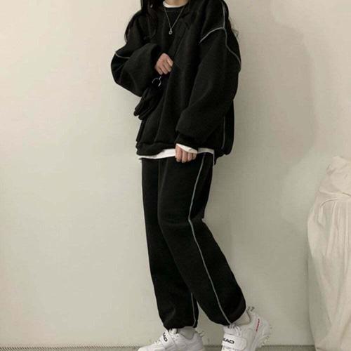 [셀럽하우스]캐주얼 LIDV9786 여성 가을 배색 포인트 널널한 핏 추리닝 세트