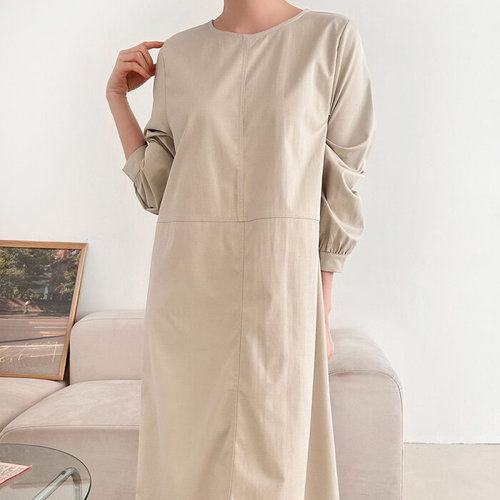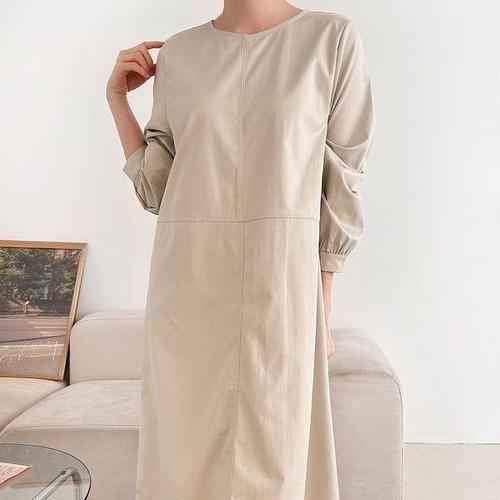 [옷자락] 여성 빅사이즈 가을 간절기 퍼프 롱 원피스 뒷포켓 절개