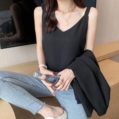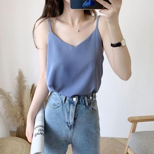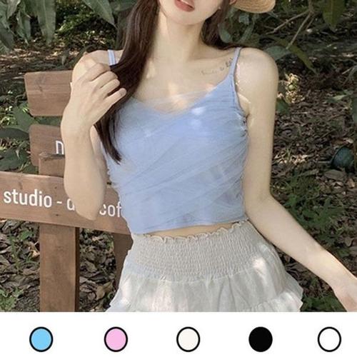 [엄지척]쉬폰 브이넥 끈나시 세미크롭 이너 민소매티 5컬러_19613709_667501