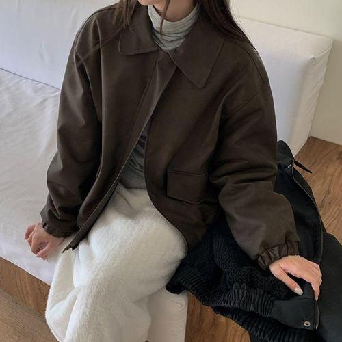 소프트 페이크 레더 라운드넥 블루종 자켓