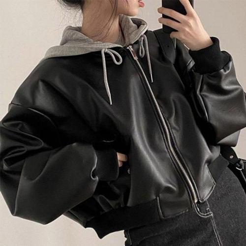 레더점퍼 여자 오버핏 가을 라이더자켓 은은광택 레더자켓 점퍼