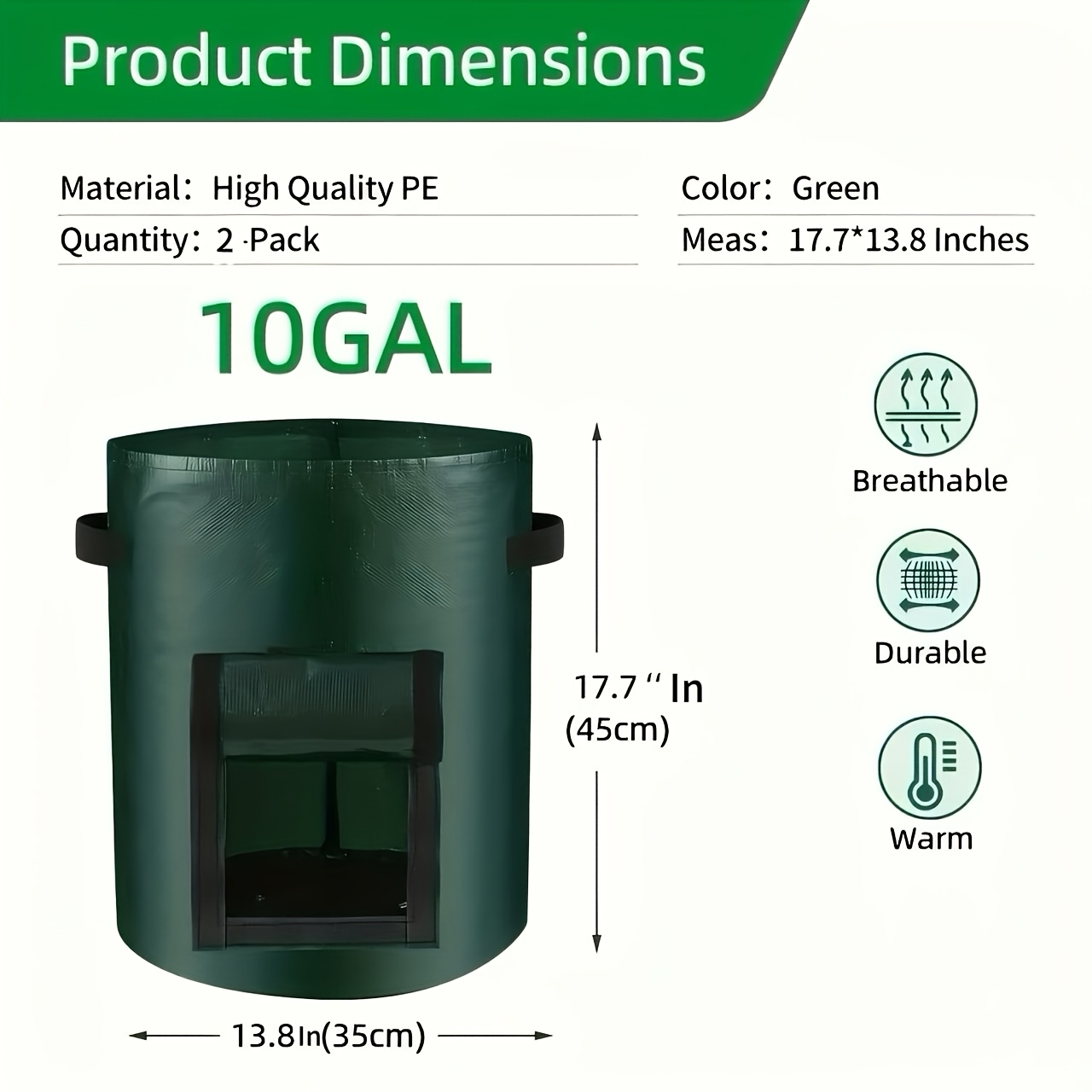 TEMU 2개입 고강도 PE 재배 가방, 관찰 포트 & 물 누출 구멍 포함 - 재사용 가능한 실내/외 화분, 감자, 당근, 토마토, 채소, 정원 재배 가방