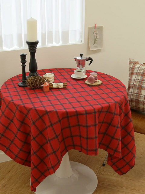 [바이지미] 산타 체크 크리스마스 장식 테이블보 -레드. 그린