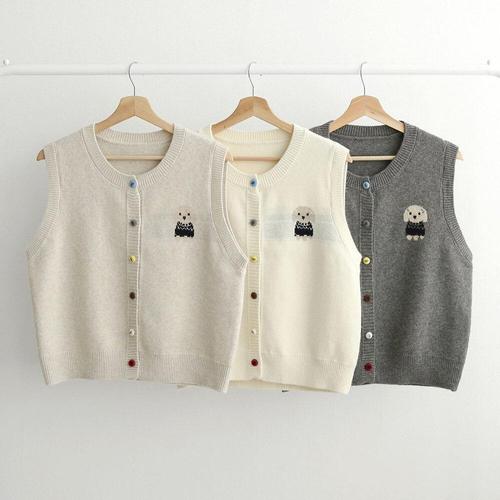 [옷자락]여성 러블리 강아지 콩단추 라운드넥 가을 니트 조끼
