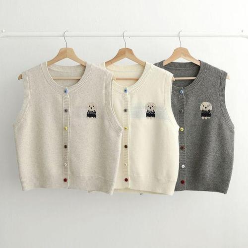 [신상오픈런]여성용 귀여운 강아지 버튼 라운드넥 가을 니트 조끼