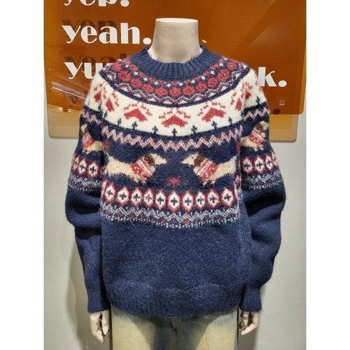 [신상오픈런]여성용 사랑스러운 강아지 자수 나그랑 라운드 가을 울 니트