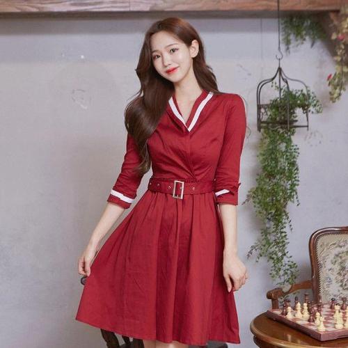 정상가:119,000원 ㅣ 에브리데이]브이넥 절개 슬림핏 라인 니트 원피스 (EB4OW017D)