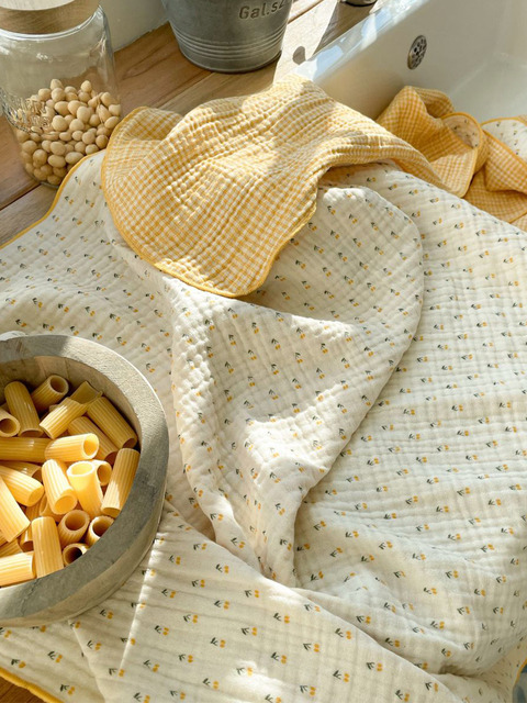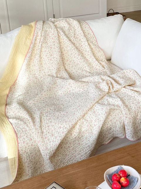 [쥬앤크홈] 쥬앤크홈 잔꽃 체크 4중 거즈 블랭킷 담요 여름 캠핑 얇은 이불 쇼파 소파커버 담요