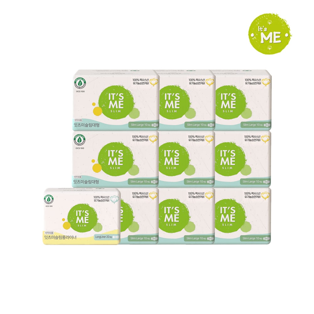 잇츠미 NEW 슬림 유기농 순면커버 생리대 대형 10P x9개+롱라이너 20P x1개