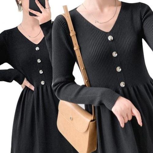 검은색원피스 오피스원피스 여성니트원피스 미디니 WFLMUUW