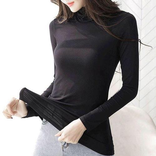 [에이치플러스몰]여자 목폴라 검정색 기모 슬림핏 얇은 목티 목폴라티