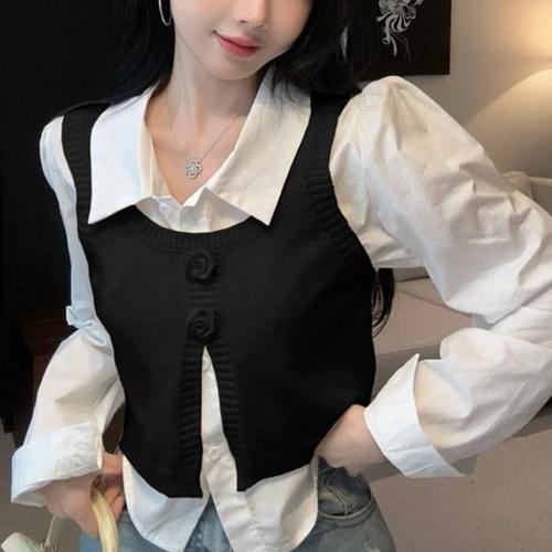 단추 캐릭터 캐쥬얼 니트 블라우스 조끼 와이셔츠 셔츠 남방 원피스:-블라우스단추